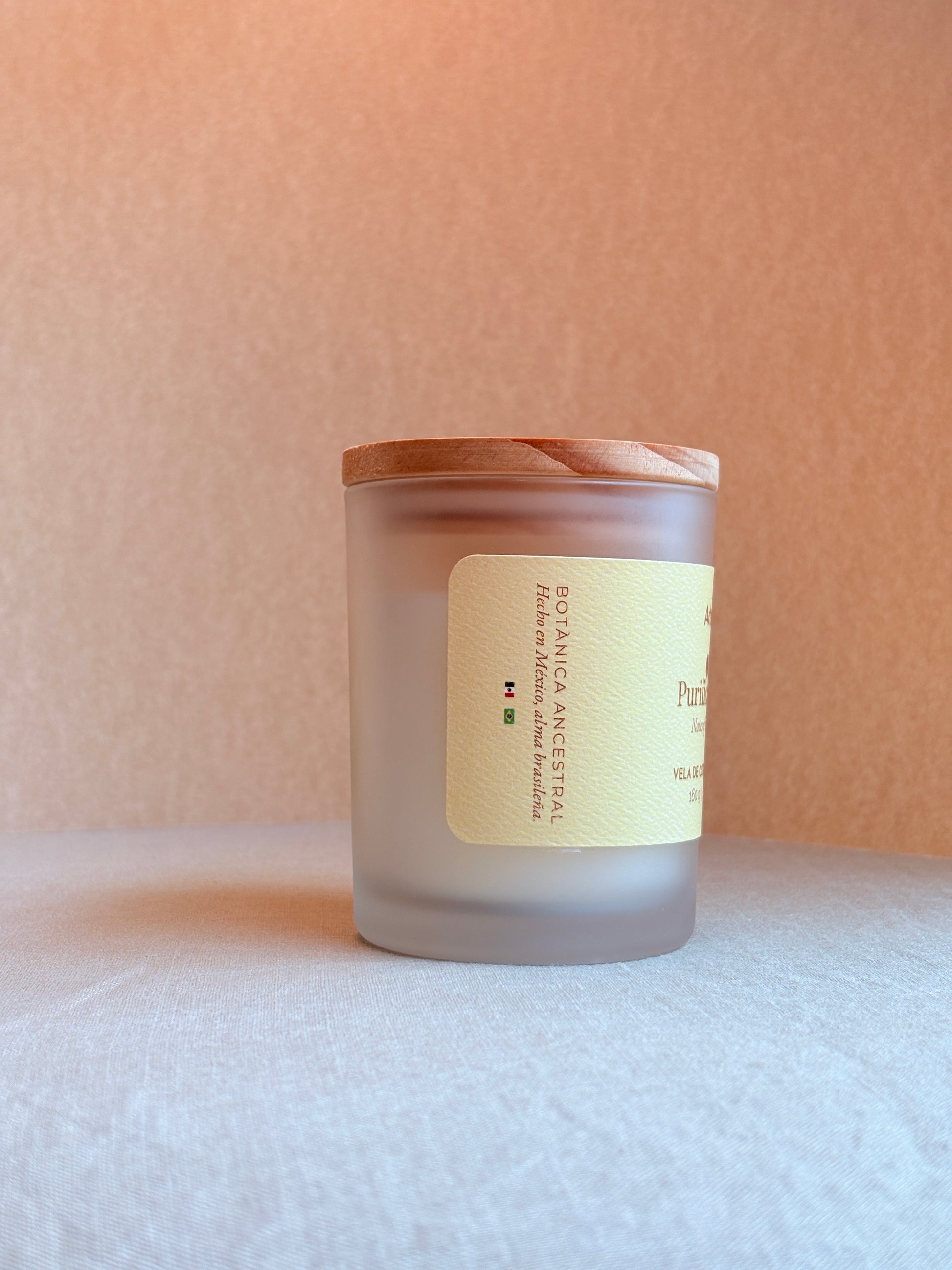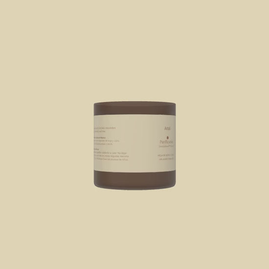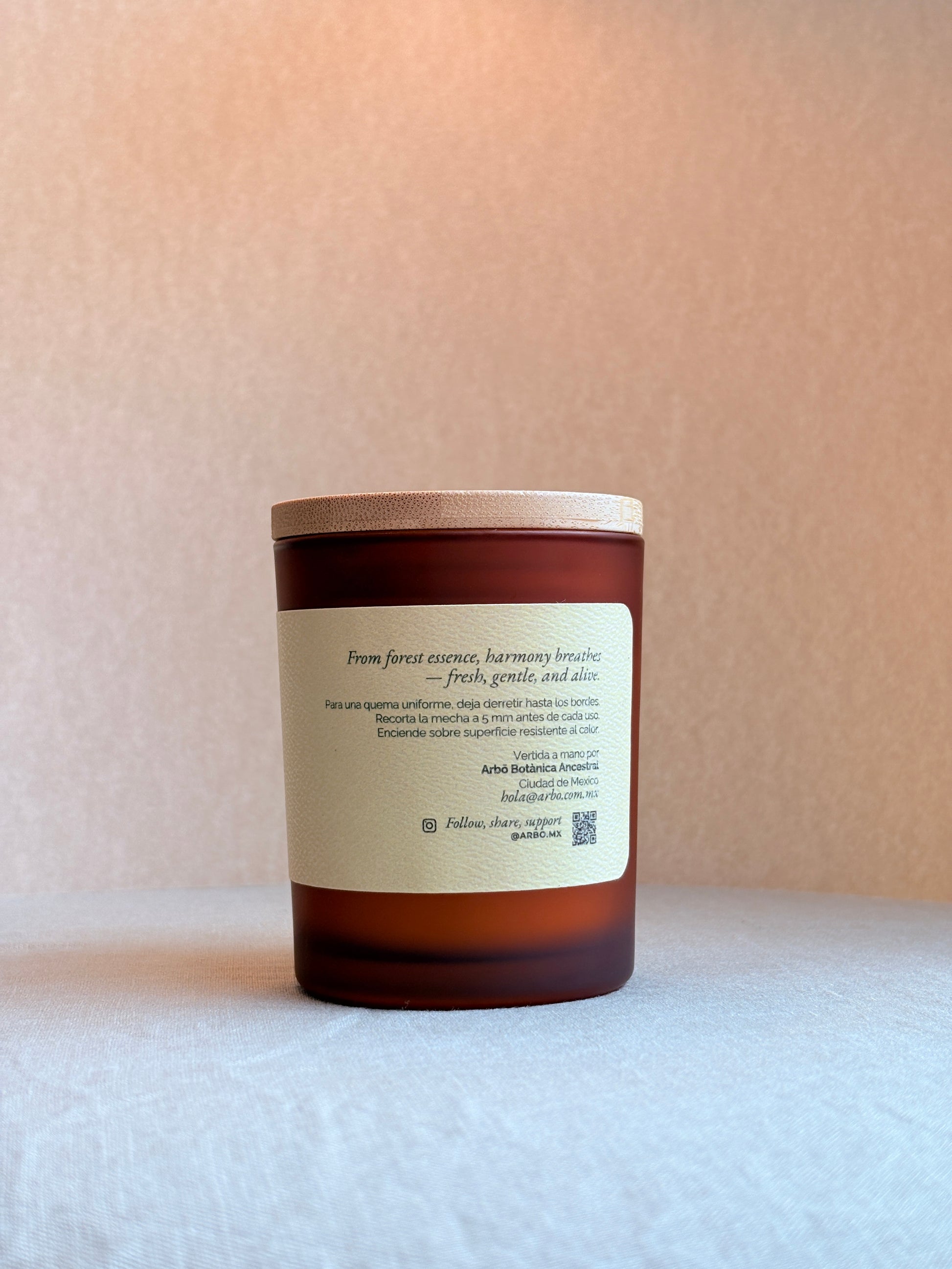 Vertida a mano con ceras vegetales de soya y coco, y fragancias botánicas que pueden variar en cada creación.